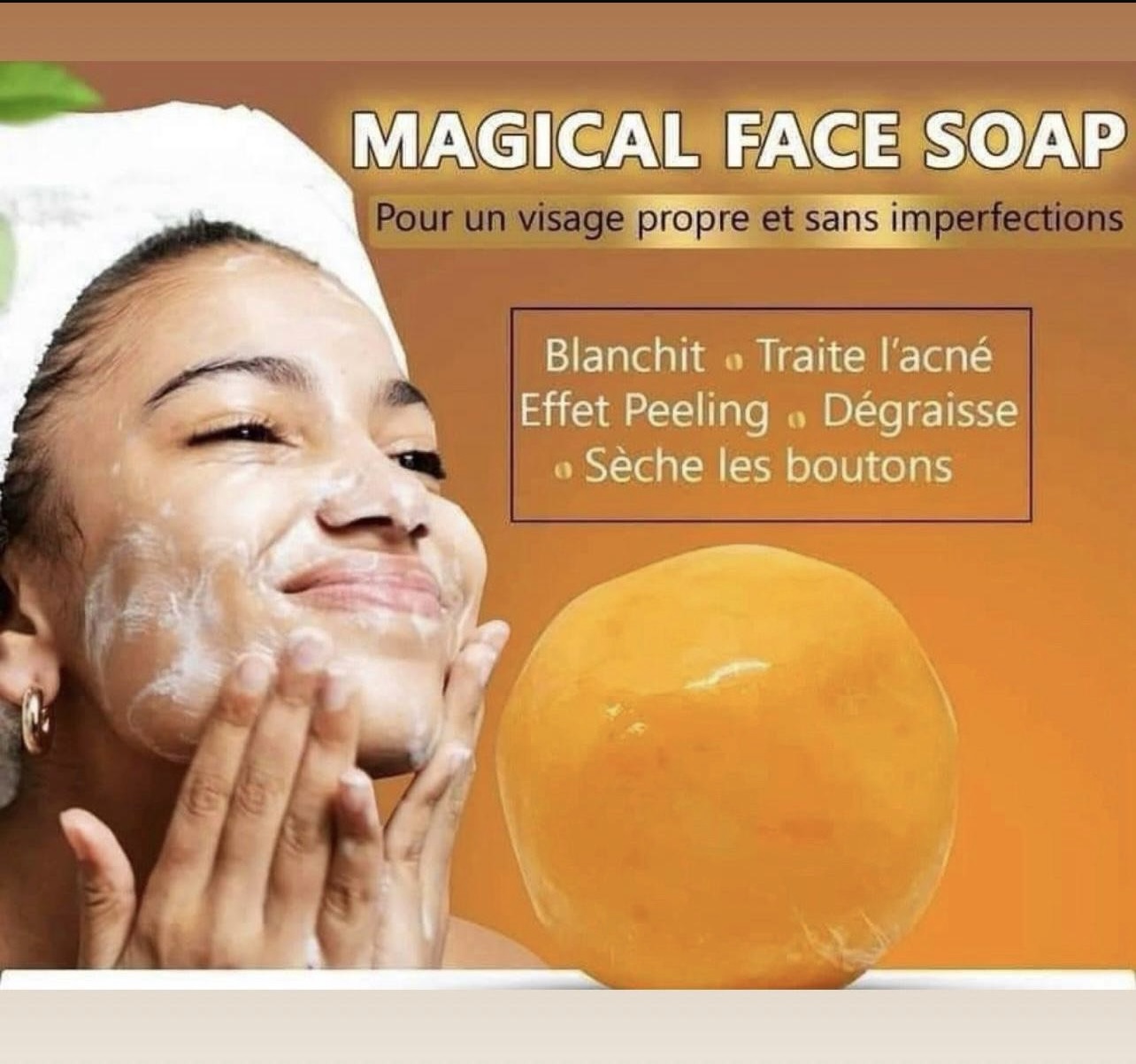 Savon de visage utra blanchissante ,blanchit ,traite l’acné , effet peeling ,dégraisse , sèche les boutons. Pour un visage propre et sans imperfections.